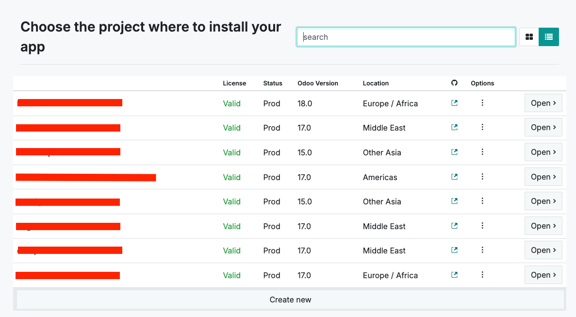 If you are logged in, you will be redirected to Odoo.sh project menu. Please select your server. When you think its correct, click Open.