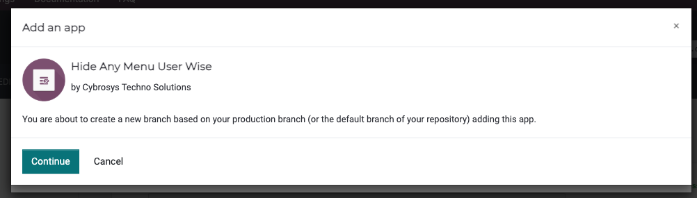 After that, you will be redirected to odoo.sh server. This pop up will appear, click continue.