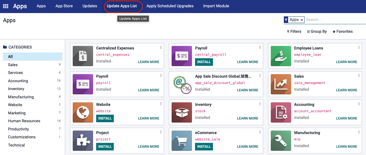 Type the module name in the search bar and it will appear. Simply click install button to install it, and it will soon activated.