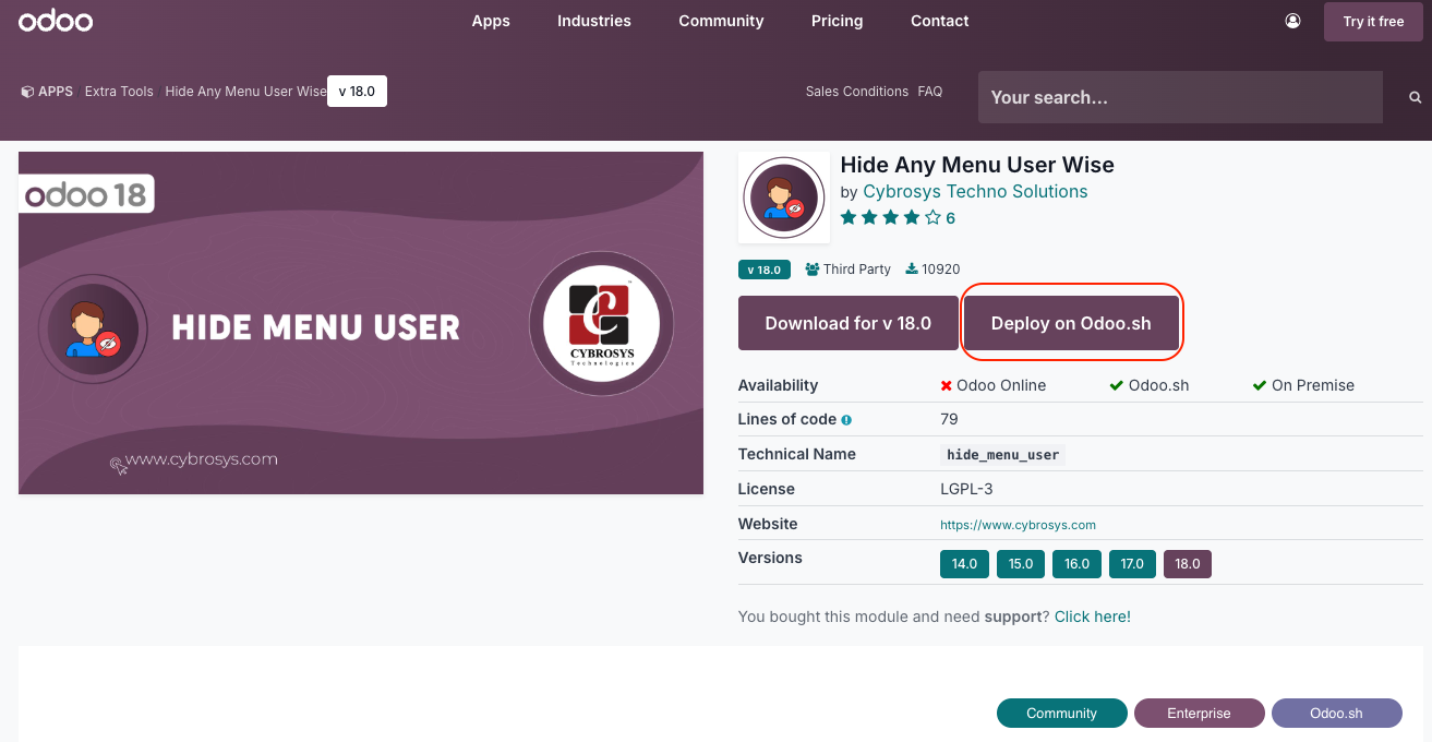 Click on "Deploy on Odoo.sh", and also make sure you are selecting the correct version.